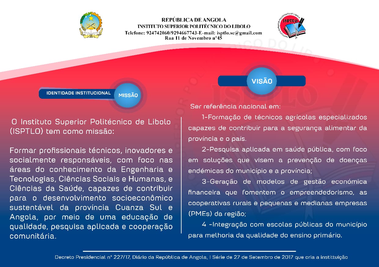 Dedicada na criação, transmissão e difusão da cultura e do saber de natureza profissional, devidamente reconhecida como uma das mais prestigiadas, qualificadas e inovadoras do país e do contexto Africano, e com uma forte relação de confiança com a comunidade escolar, empresarial e outras organizações.